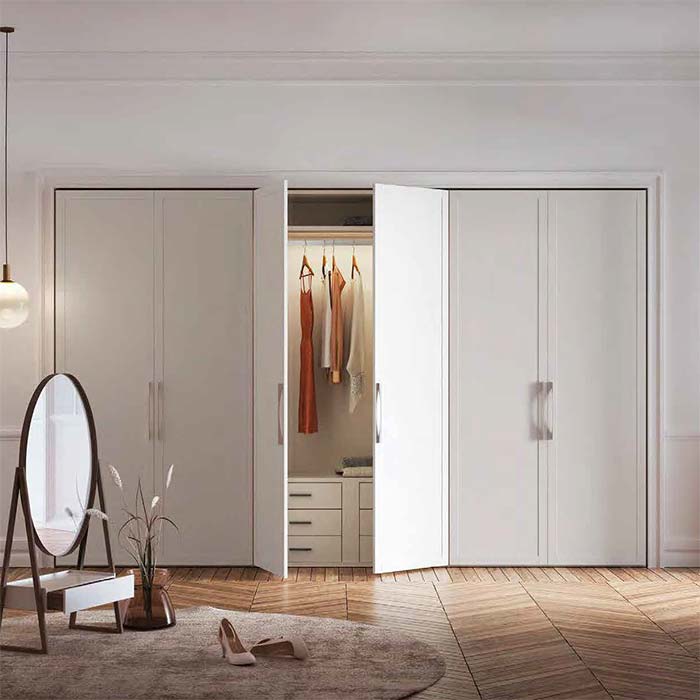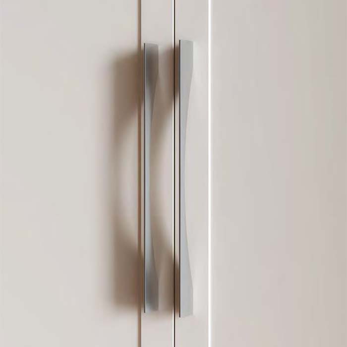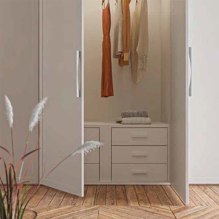 lo rendono speciale i dettagli, curati nei minimi particolari come la maniglia color nichel abbinata alla finitura Ecolac canapa e il tubo appendiabiti rettangolare con gommino anti rumore.