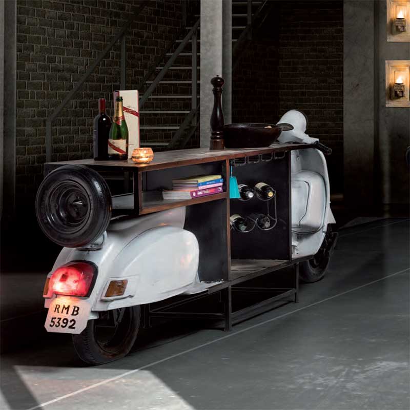 Mobiletto consolle originale ricavato da una vespa vintage, disponibile in diverse colorazioni.