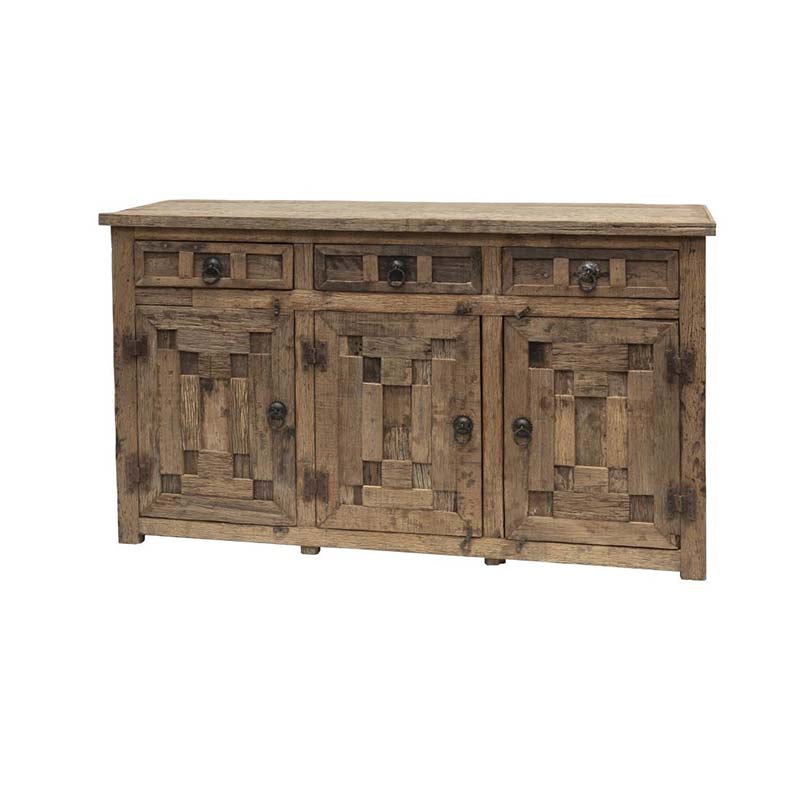Mobile credenza con 3 ante e 3 cassetti realizzato in legno massello di Teak riciclato, Mobile molto capiente e robusto provenienza India.