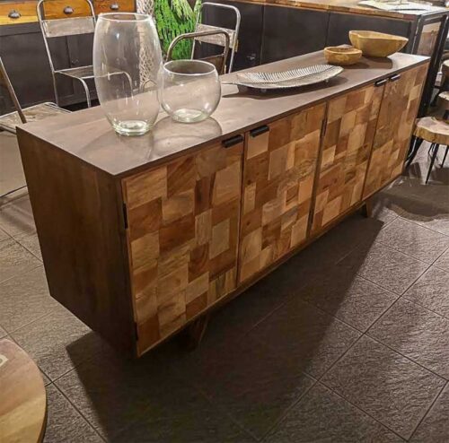 Bellissima credenza molto robusta realizzata in legno massello Indiano, 4 ante con finiture particolari.