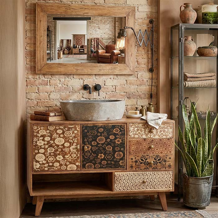 Porta un’esplosione di personalità, calore ed energia creativa nella tua sala da bagno con il Mobile Sottolavabo “Boho Flora”.