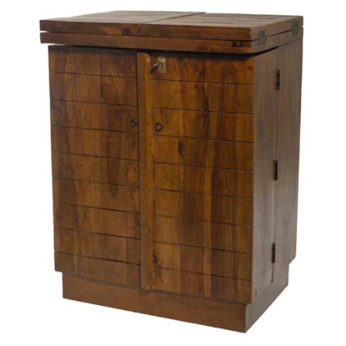 Bellissimo mobile bar in legno massello stile vintage, il mobile si apre creando così un vero e proprio banco bar con porta bottiglie e vani.