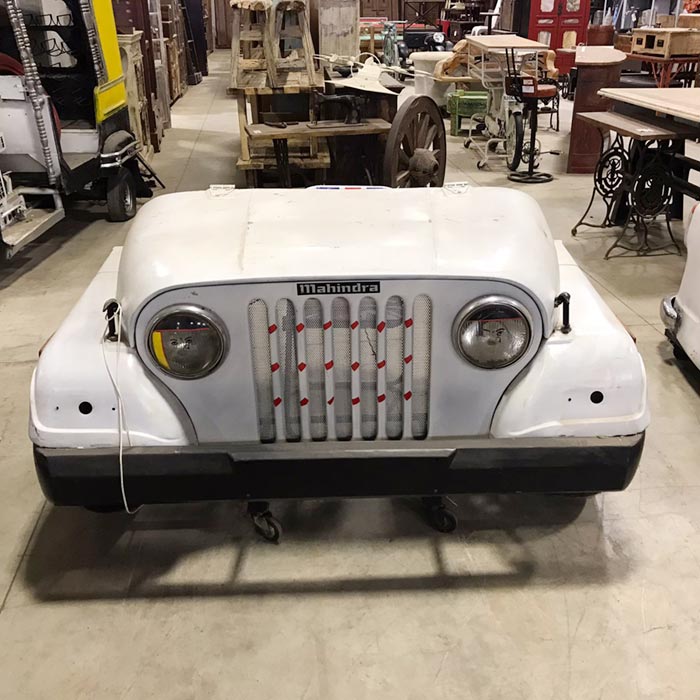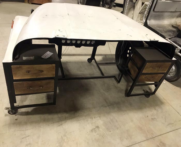 Bellissima ed originale scrivania jeep vintage bianca, mobile ricavato da un vero fuoristrada vintage, composta da 4 cassetti nella parte posteriore.