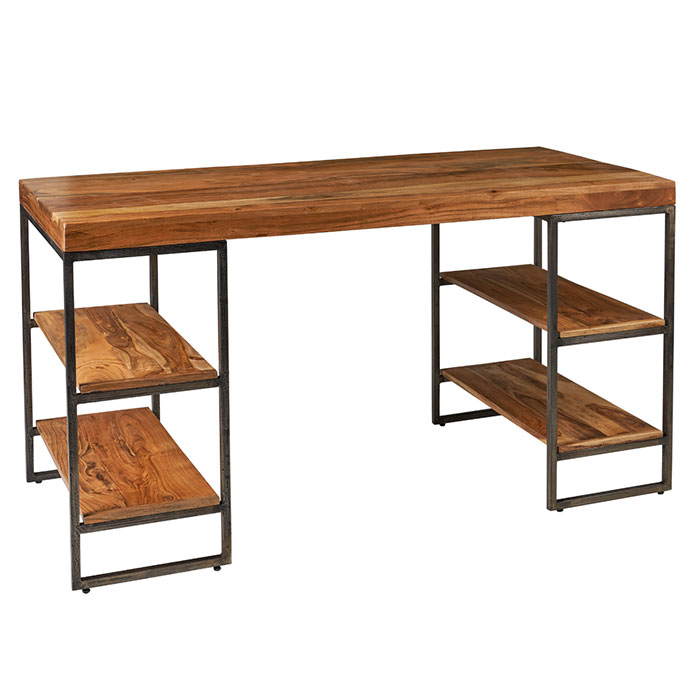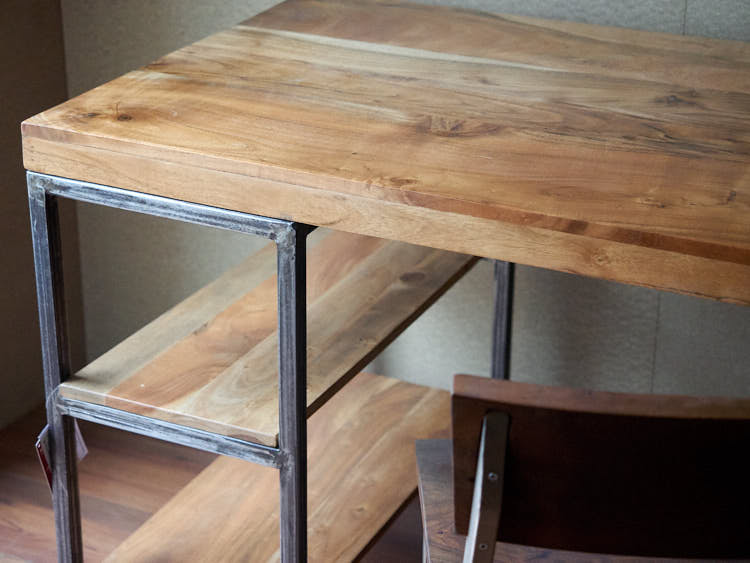Scrivania stile industriale in offerta, struttura in ferro con piano in legno massello di noce India