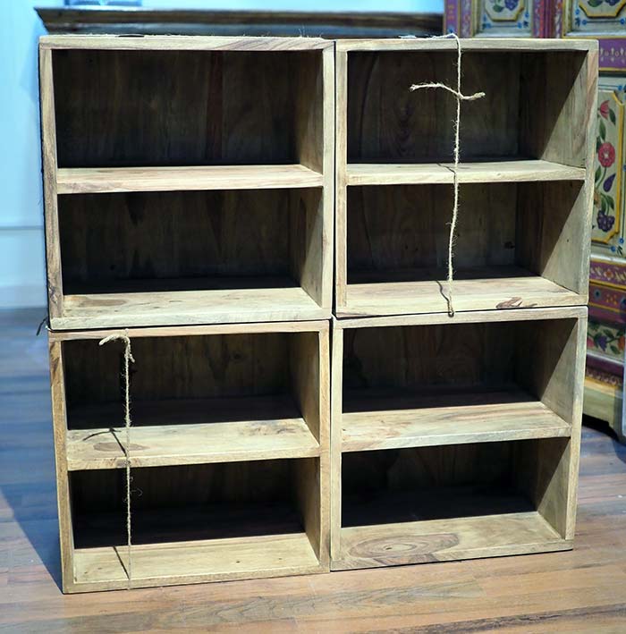 Set mobile a cubi componibile in legno massello di shesham di provenienza India. I cubi misurano cm 40 x 30 x 40h, prezzo 89€ cad.