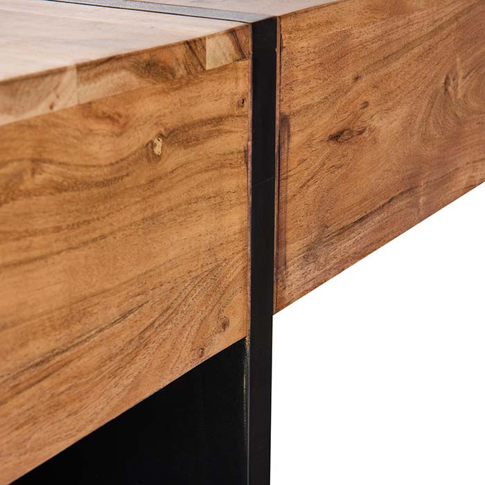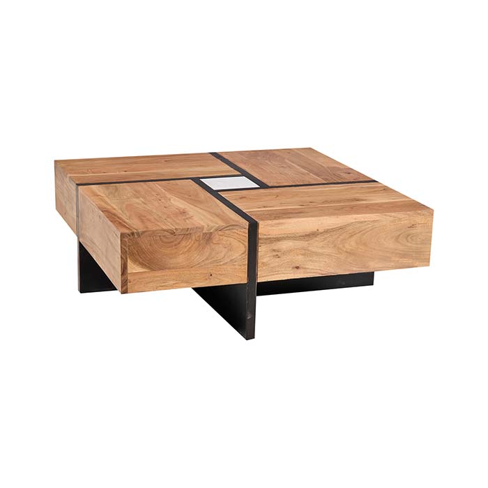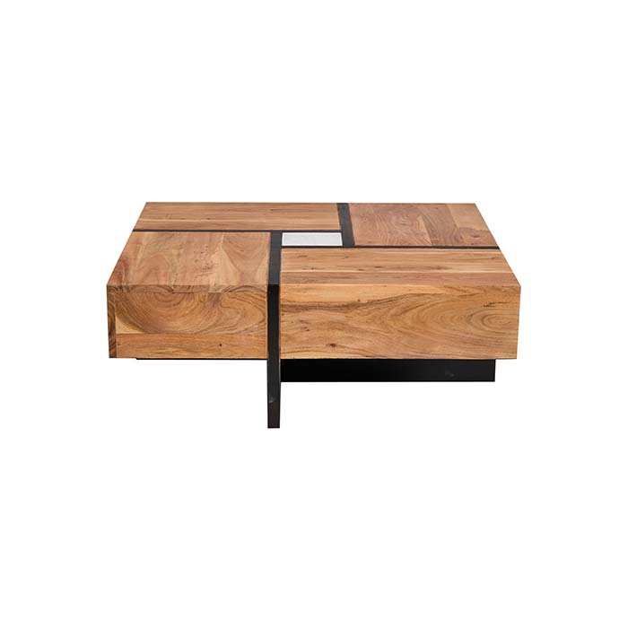 Elegante tavolino basso in legno massello di acacia, perfetto per creare un’atmosfera zen nel tuo soggiorno o spazio relax. Il design geometrico, con inserti in metallo nero, dona un tocco contemporaneo, mantenendo l’estetica naturale e armoniosa tipica dell’arredamento giapponese.