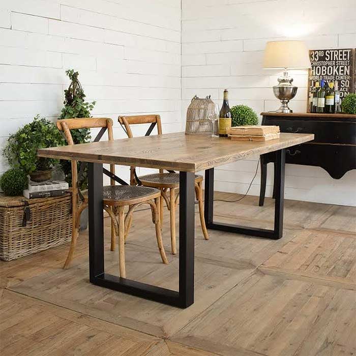 Tavolo fisso rettangolare in legno di rovere con struttura in ferro stile industriale, tavolo fisso da 8 posti in offerta.