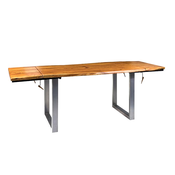 Il tavolo allungabile con gambe cromate e piano in legno massello di quercia naturale è un complemento di arredo elegante e funzionale. Si adatta a diverse esigenze di spazio, grazie alle due prolunghe da 40 cm cadauna che permettono di estendere il piano da 140 a 220 cm.