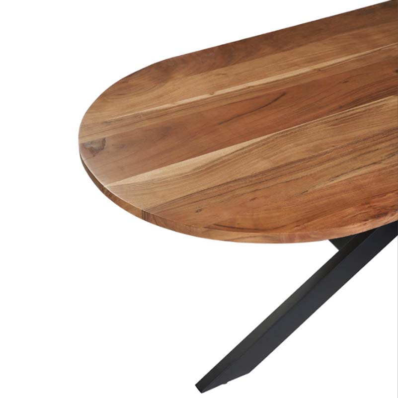 Tavolo ovale con piano in legno massello e struttura design in ferro. Tavolo fisso dal design originale dalla forma ovale.