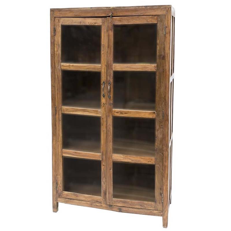 Mobile etnico in legno massello di teak India con ante a vetri, mobili di importazione India in stile etnico classico.