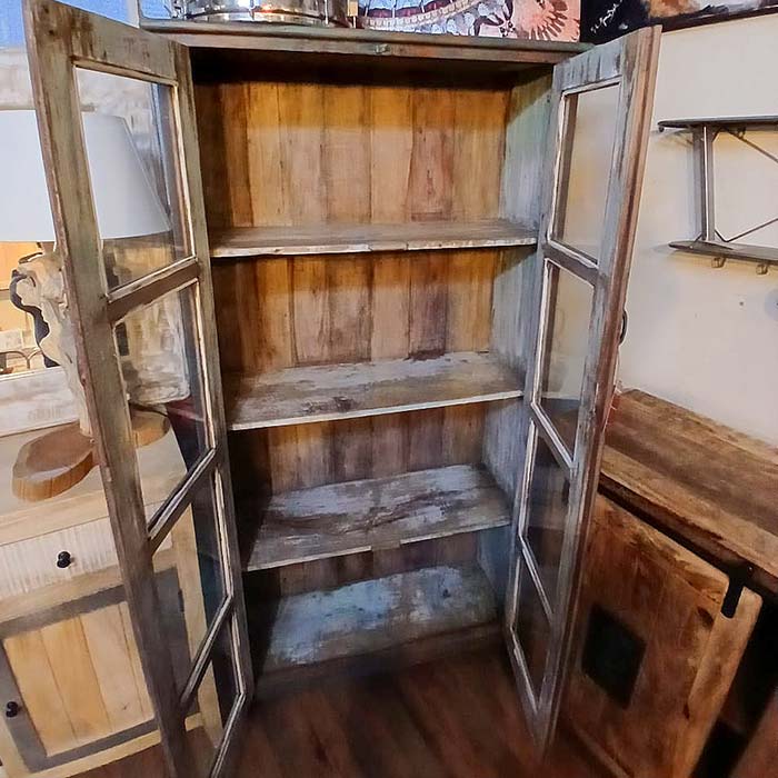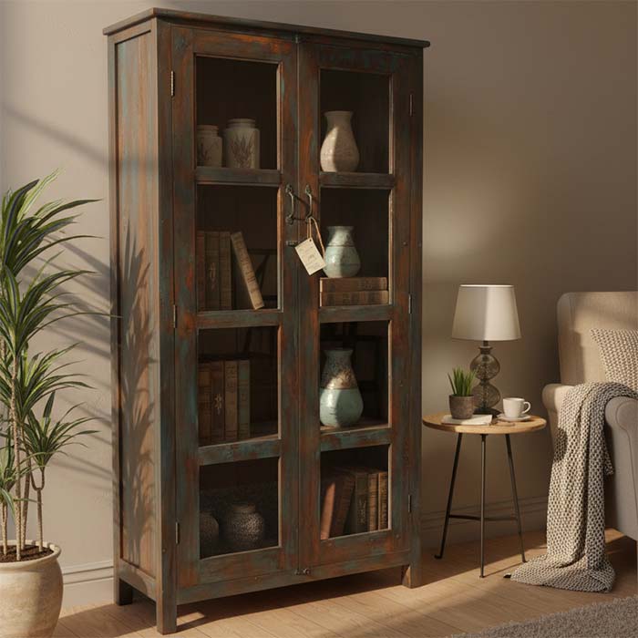 Se cerchi un pezzo unico che rompa la monotonia, la Vetrina Blue Soul è la scelta ideale. Realizzata interamente a mano in legno massello di mango, ogni esemplare porta con sé l’autenticità dell’artigianato indiano.